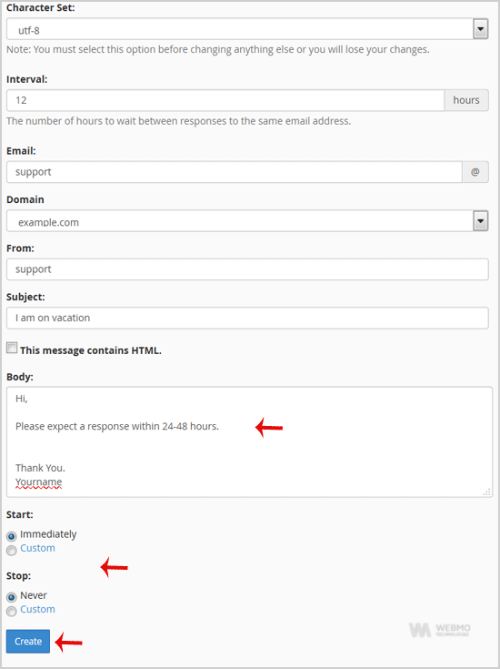 4. In the Interval field, specify the number of hours you wish the autoresponder to wait between responses to the same e-mail address.