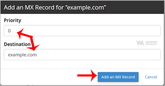 Now click the "Add a MX Record" button.